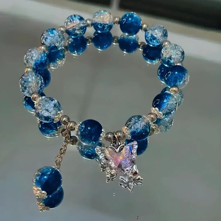 This elegant blue beaded butterfly charm bracelet features shiny crystal-style beads and a delicate butterfly charm. Perfect for daily wear, parties, or gifting, it adds a soft and stylish touch to any look. 💙🦋