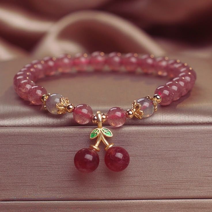 This pink crystal cherry charm bracelet features a delicate and stylish design with soft pink beads and a cute cherry charm, making it perfect for everyday wear and a lovely gift for girls and women.